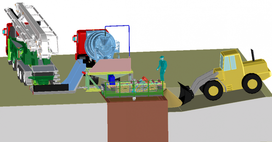 Questo strumento comprende un telaio vibrante, posto al di sopra della vasca di stoccaggio dell’acqua sporca, una tramoggia di convogliamento del prodotto con pianale zincato a caldo e una serie di accessori integrati.